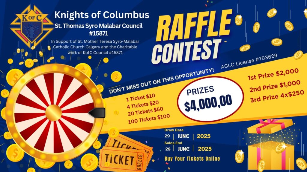 In the year 2014, started as the first Syro Malabar Council in Canada with 28 charted members, Knights of Columbus St. Thomas Syro Malabar Council #15871 have grown into a strength of 212 Members, majority of them as insurance members. Our council won the prestigious Star Council Award this year also, the international organization’s top honor for local councils. The presence and the good standing of our Council was very instrumental in securing a Church loan of $3.5M towards the purchase of our Church building. We enjoy the ‘Go to People’ status within the community and volunteer in regular maintenance upkeep of the Church and support several capital projects.